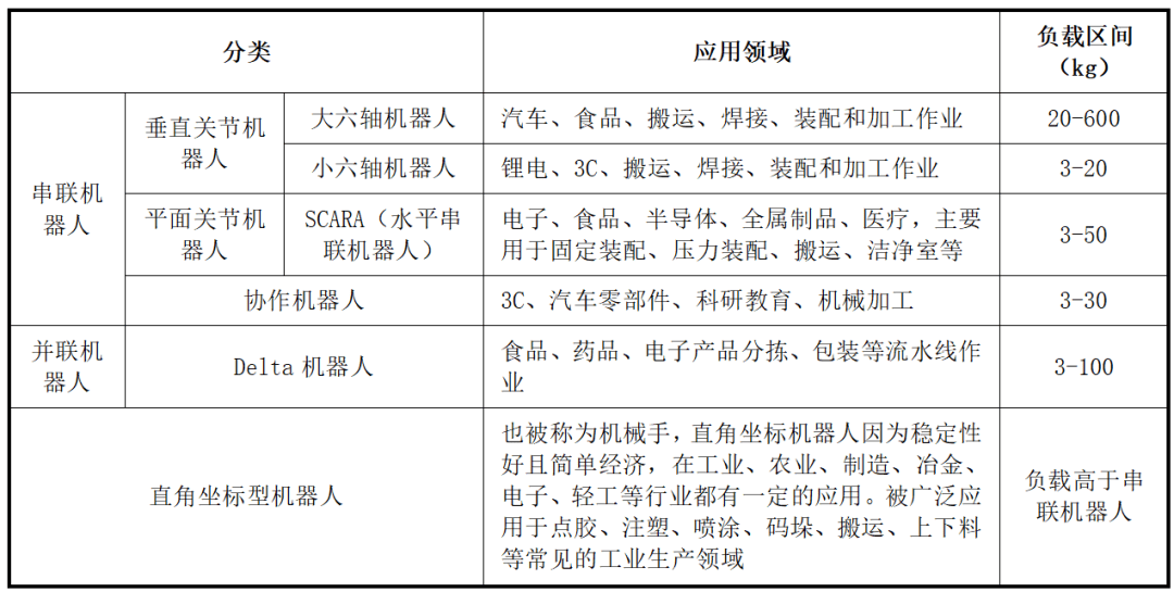 工业机械人包罗加工、拆卸、包拆机械人等。按照机械机构,工业机械人又可被分为垂曲关节型、平面关节型、并联机械人、曲角坐标型等,前三种属于多关节机械人,此中垂曲关节型、平面关节型一般为机械人,协做机械人也属于机械人的一种。