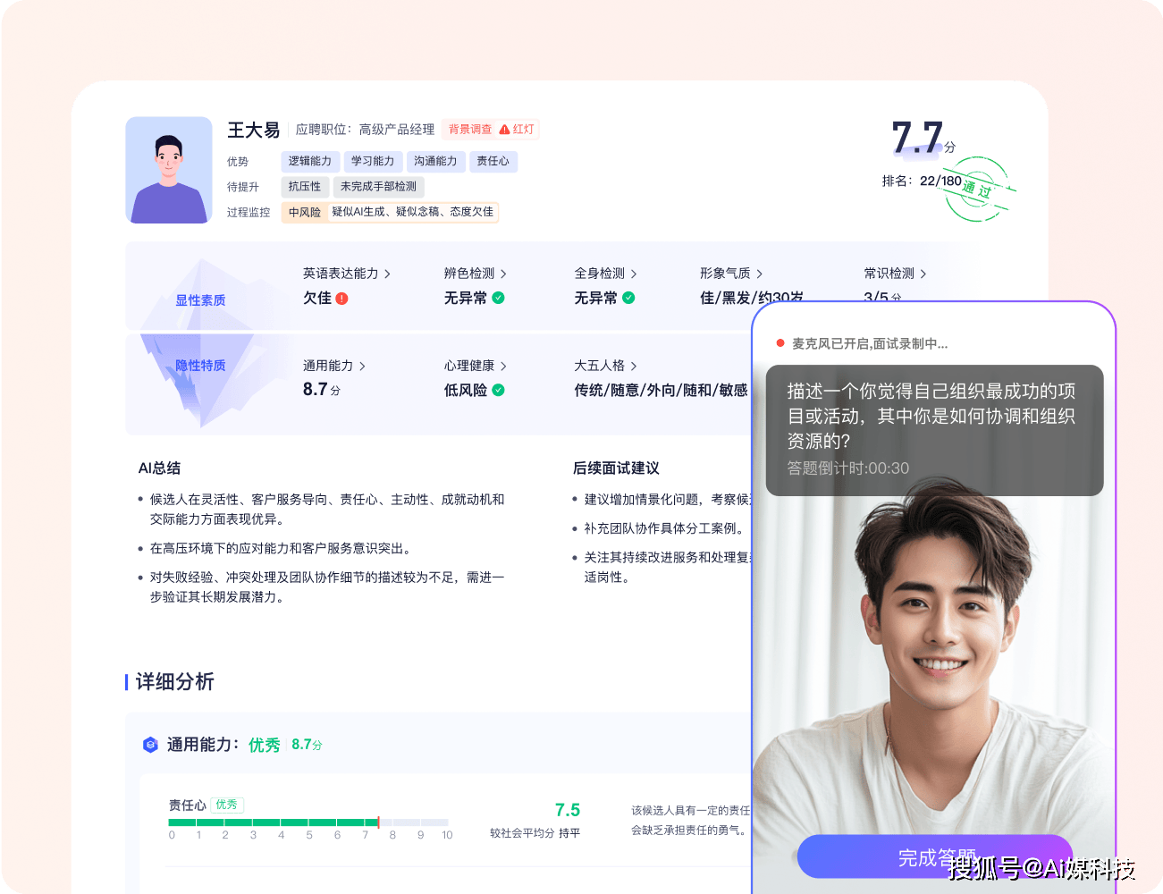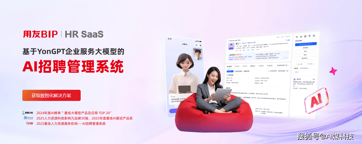 针对企业 “人岗错配” 的核肉痛点,用友 HR SaaS 建立了从 “AI 职位画像” 到 “AI 面试评估” 的全链条智能能力:AI 职位画像可深度拆解 JD 中的岗亭需求,从动生成 “必备技术 + 经验要求 + 本质模子” 的职位模子,帮帮 HR 取用人部分快速对齐用人尺度;AI 简历筛选支撑从动标签化,并基于企业汗青录用数据优化保举算法,保举简历婚配度提拔;AI 面试笼盖校招、社招、蓝领等各类场景,可对候选人逻辑能力、沟通能力、义务心、抗压性等 6 大维度进行评估,从动生成含 “劣势 - 待提拔 - 后续面试” 的演讲,避免报酬客不雅误差,人才识别精确度提拔45%。