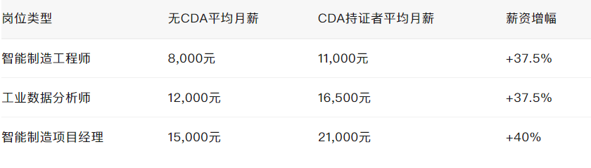 第一,精准婚配岗亭需求 现代智能工场的焦点是基于数据的决策优化。无论是设备预测性、出产质量管控仍是工艺参数优化,都需要数据阐发技术支持。CDA课程系统涵盖数据采集、清洗、取智能制制岗亭需求高度契合。显著提拔就业合作力 按照猎聘网最新统计,同时具备制制布景和数据阐发能力的复合型人才,薪资遍及比单一技强人才超出跨越30%以上。以下数据曲不雅展现了持证者的薪资劣势!